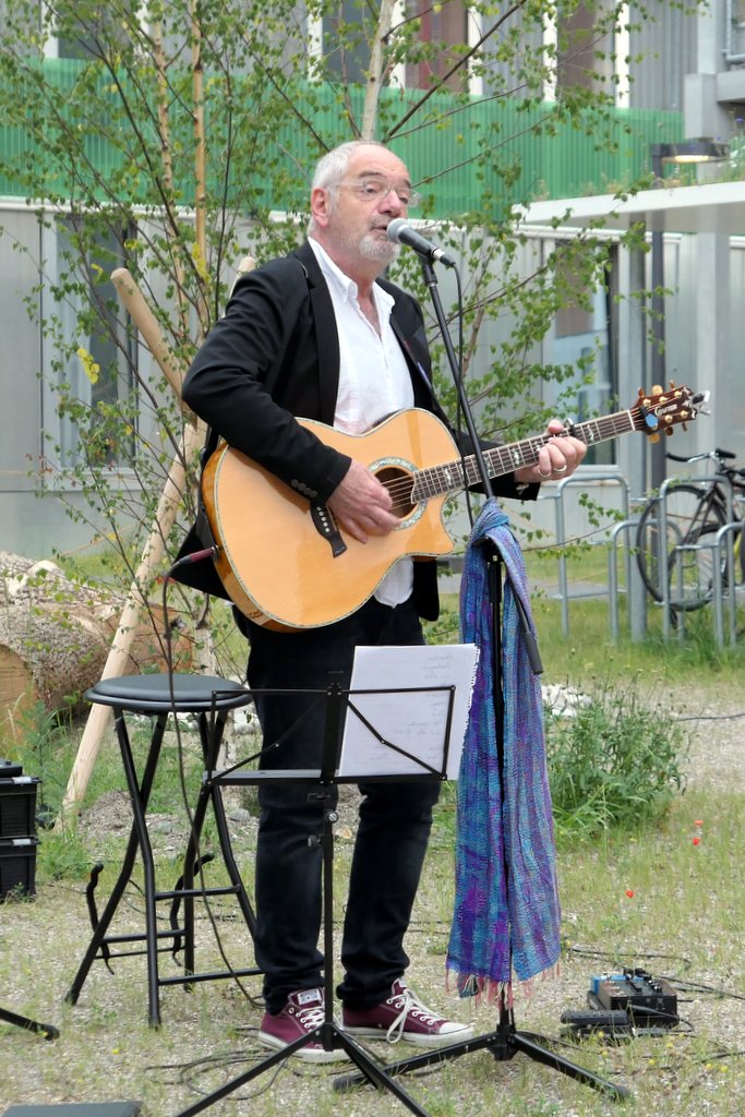 Auf Einladung einer Bewohnerin vom Goldbachweg, gab Roli Frei am Freitagabend (22.Mai 2020) ein Hofkonzert. WOW! Welch grossartiger Sound, seine Gitarre tönte wie ein ganzes Orchester. Die Akkustik im Hof glich der eines Konzertsaals. Roli – 50 YEARS ON STAGE - erfreute die Zuhörer*innen mit seinen Songs, so spielte er auch Stücke aus seinem neuen Album STRONG IS NOT ENOUGH.