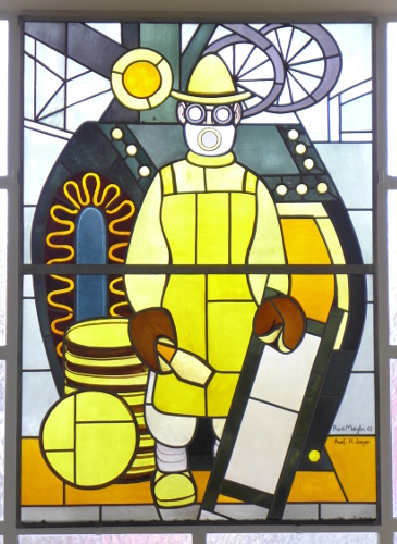 Rudolf Maeglin, Farbarbeiter gelb, Glasmalerei